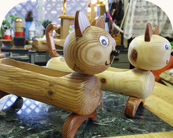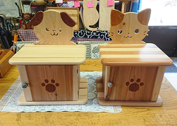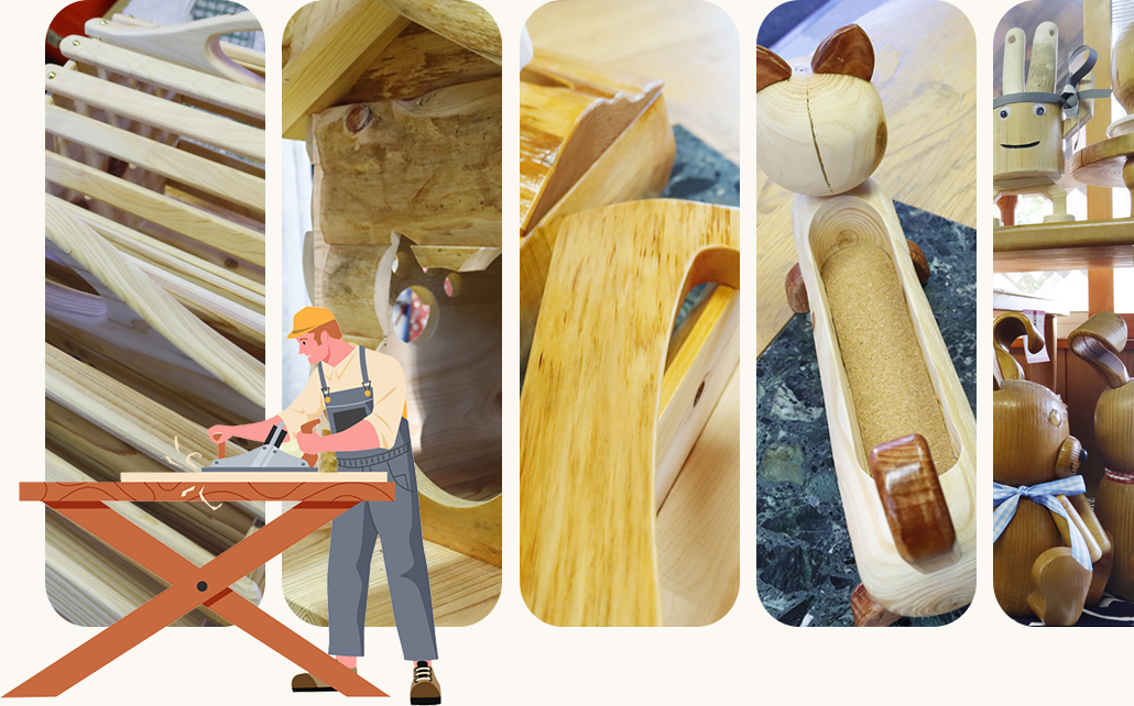 杉やヒノキで製作する、さまざまな木製雑貨。インテリアや観賞用としてお楽しみいただけます。